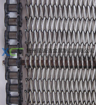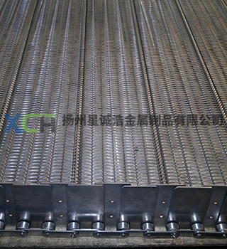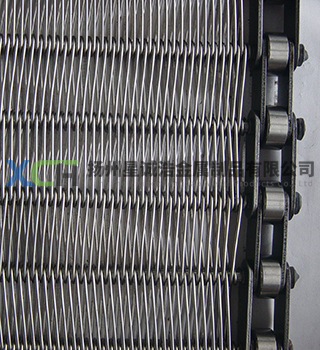 鏈網(wǎng)是由網(wǎng)帶邊緣鑲鏈條,鏈條附在從網(wǎng)條穿過的支軸上面。網(wǎng)面密度由加工產(chǎn)品的尺寸決定。